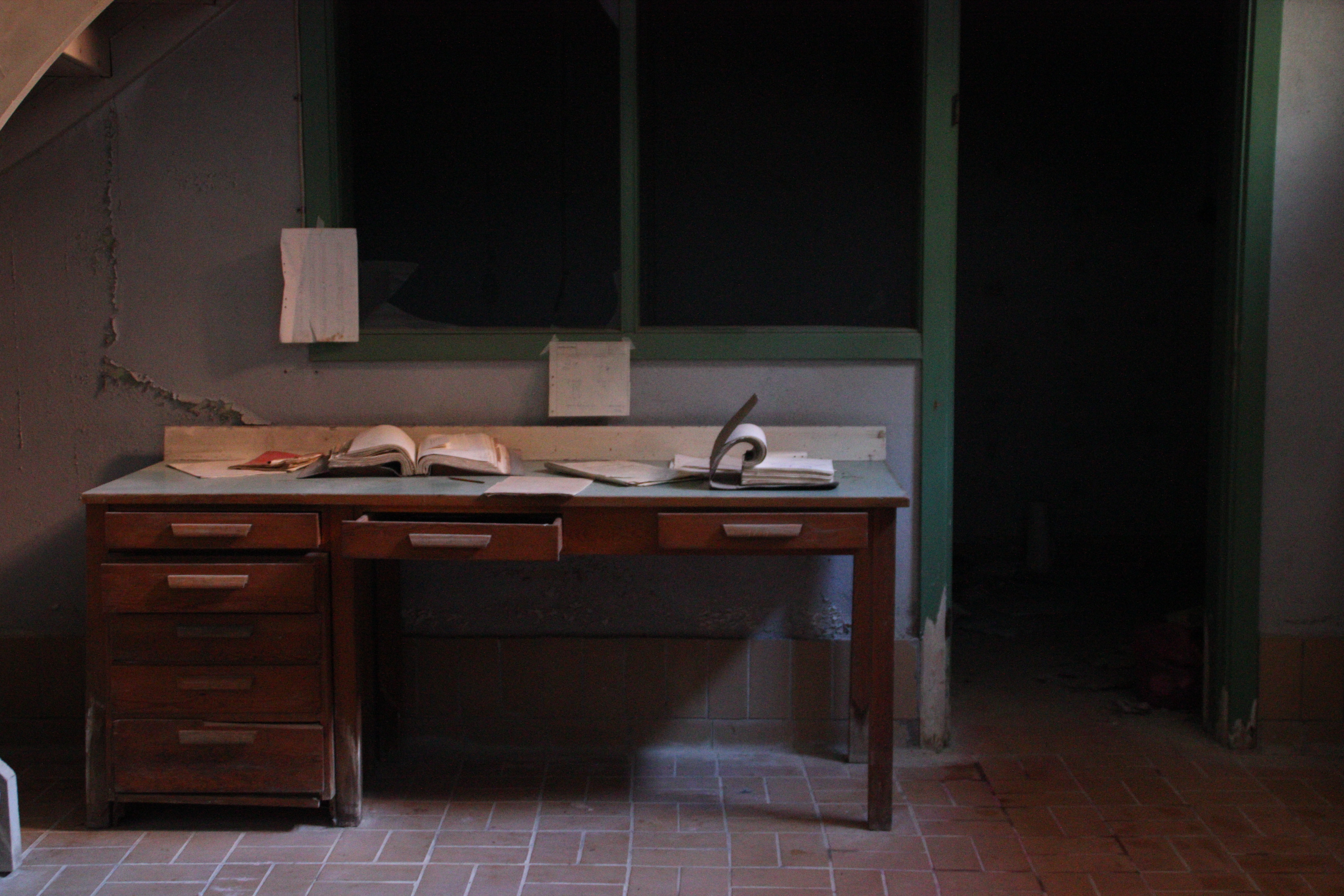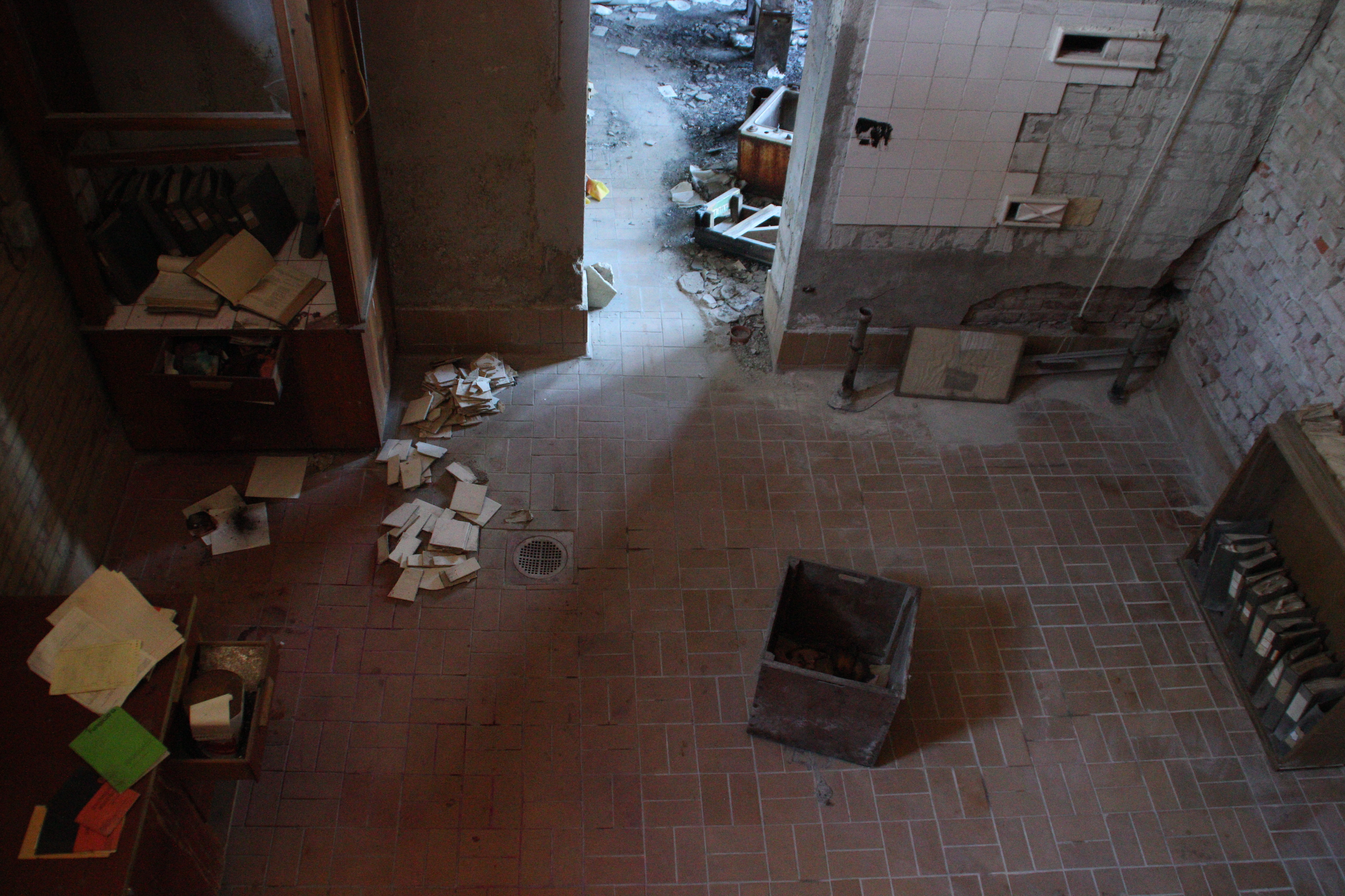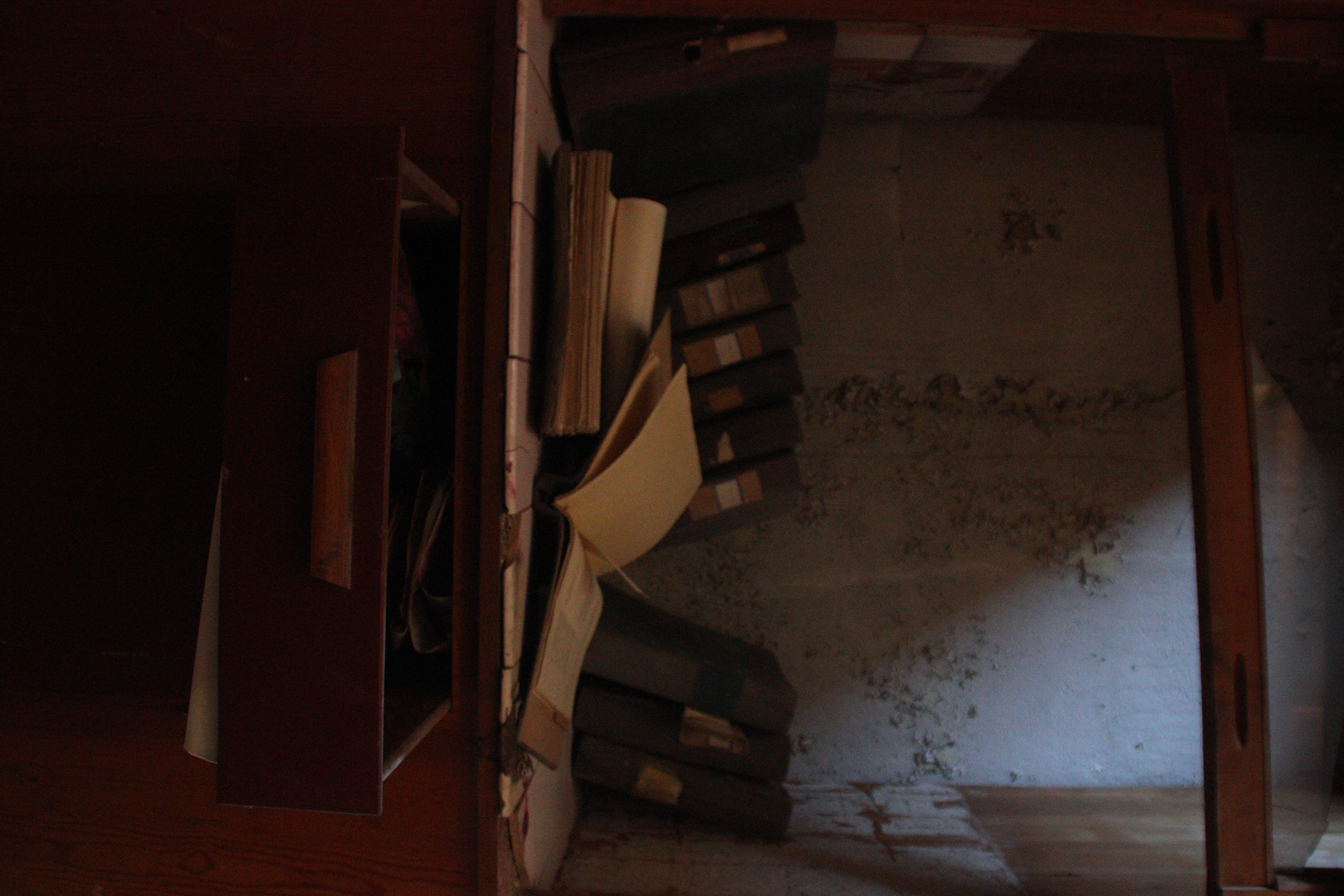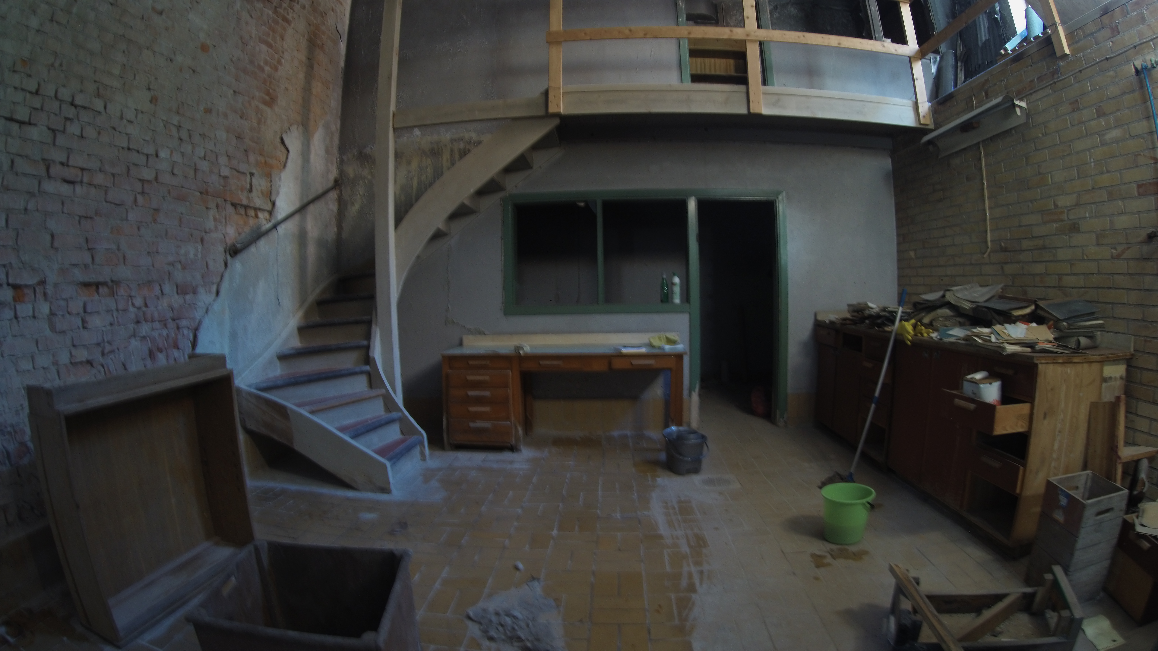 in a specific, remarkable space of a former paper factory in swedish fengersfors, I created a site-specific intervention, when to a gaunt, dirty, abandoned, marked by time passing room, I recreated its original appearance – by cleaning, tidying and reinstalling of found objects and artefacts – however, this original face is just a fiction based on subjective imaginary and a fictive narrative. it might have been completely different as there was no retained documentation what purpose the room might have had. by creating a fictive situation – as if nothing has ever happened - it feels as if the time has stopped, time rapture, crack in the storyline. the certainty of the time and space perceived was undermined, the viewer enters an unexpected situation and is paradoxically confused by an order, cleanness, peace.